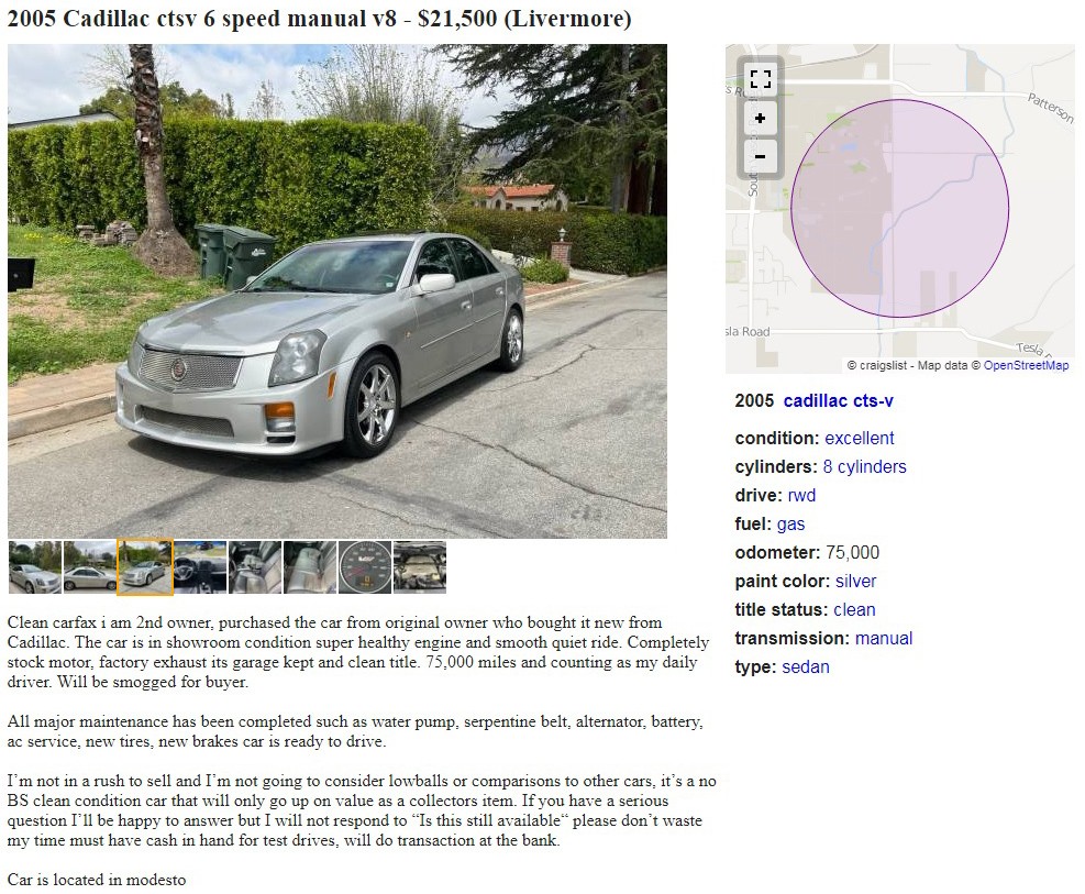Vehicles from the 2000s seem far too new to be shown on a site known for old, dusty vehicles. This 2005 Cadillac CTS-V is a solid two decades old now, however, and it just doesn’t seem possible that this car, or this series of cars, could be that old. How is time ticking away so much faster now than it did when we were younger? This one is posted here on craigslist in Modesto, California, and they’re asking $21,500. Here is the original listing, and thanks to Mitchell G. for the tip!