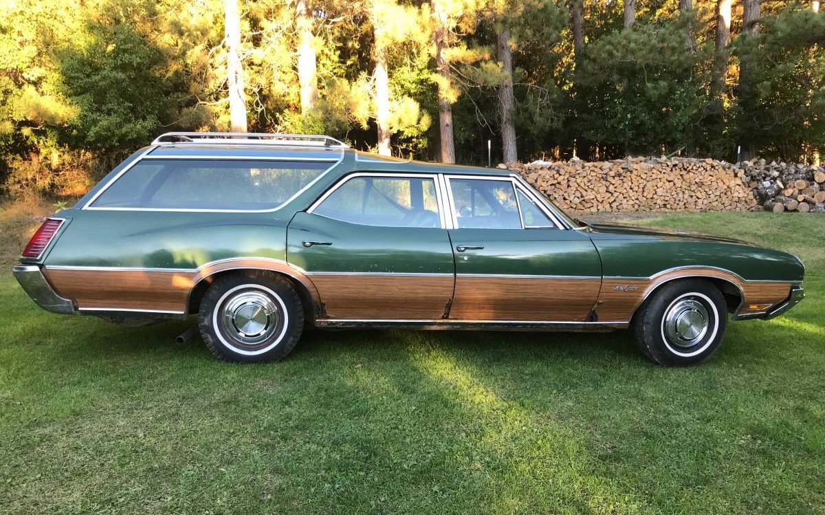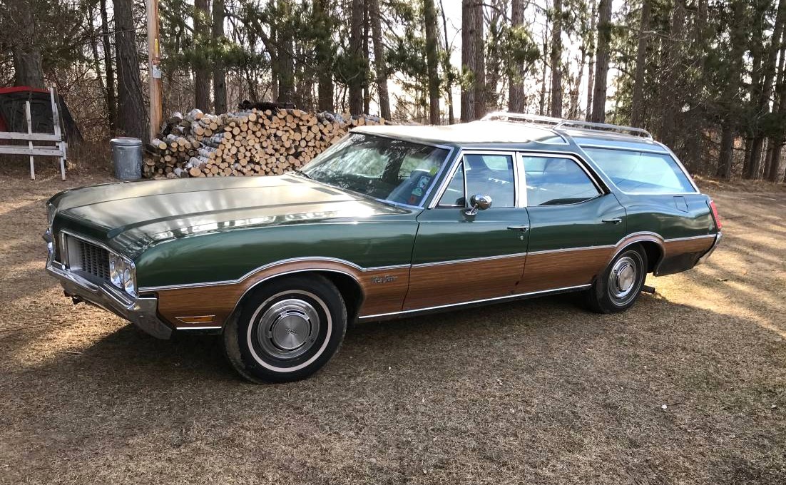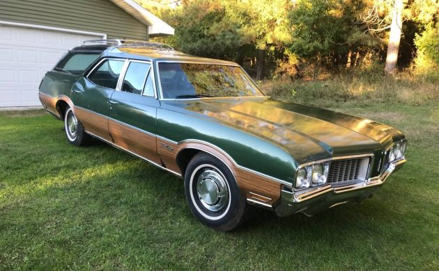 Under the hood is a 350 cubic inch “Rocket” V8 with an automatic transmission. Since it needs a new oil pan, we guess the wagon doesn’t run at the moment. The Olds needs bodywork, per the seller (rust in the front fenders?), though the dark green paint and faux wood paneling looks okay. If you’re nearby, you might want to check it out, but it’s not all that rare since 34,000 were produced in 1970 alone.