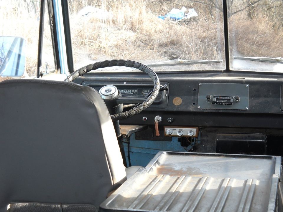 I have a friend that had an A100 van like this, only 318 and automatic. It was a,,,challenging vehicle, to be blunt. There was nothing inside, and rattled like 6 marbles in an empty coffee can, it handled funky with all the weight up front, the V8 was hot, it was just a miserable vehicle to drive. Don’t even think about them in the snow or wet grass, for that matter. The column shift on these was also a bad spot, with shift linkage 3 feet long and prone to wear, and with my general dislike of cabover vehicles, I can honestly say, I hated the old Econolines and A100 vans. The Tradesman was a much better unit, but these, no thanks.