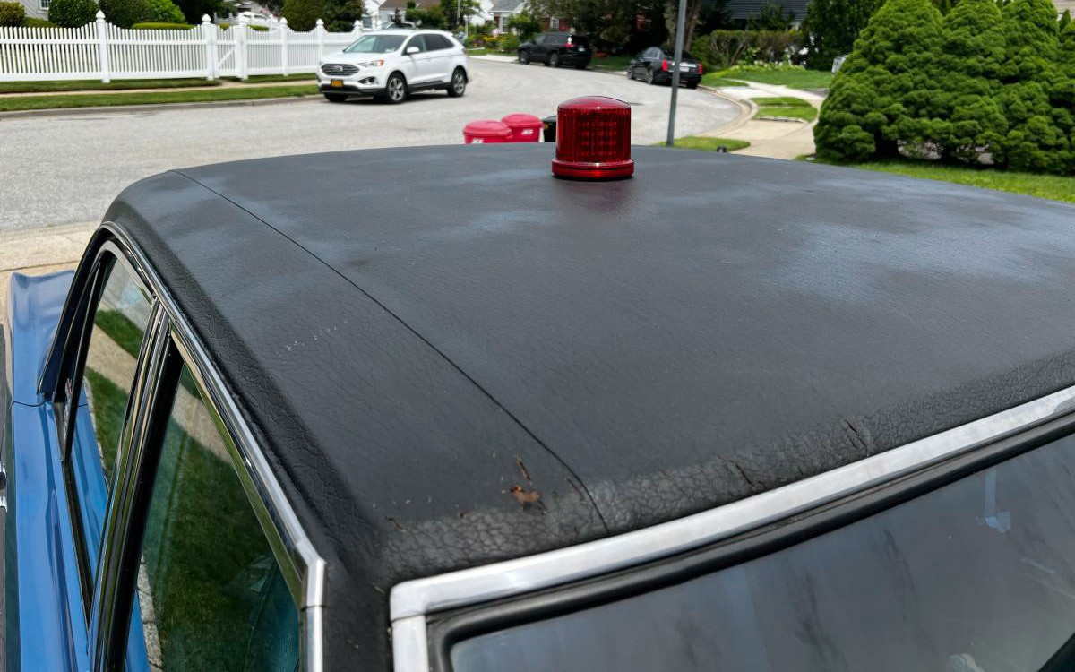 A little overpriced for the condition, with the rust issues being expensive to fix, particularly under the vinyl top. The vinyl top has to come off as part of the rust repair process and should not return, IMHO. A nice two-tone paint job, with a white top and blue body would look sharp, IMHO! The Federal “Bash Beam” Bumper in front can go away if one can find a pre ’73 car with smaller bumpers to bolt on in its place. Note the use of LED headlamps to replace the sealed beam headlamps these would have been born with!