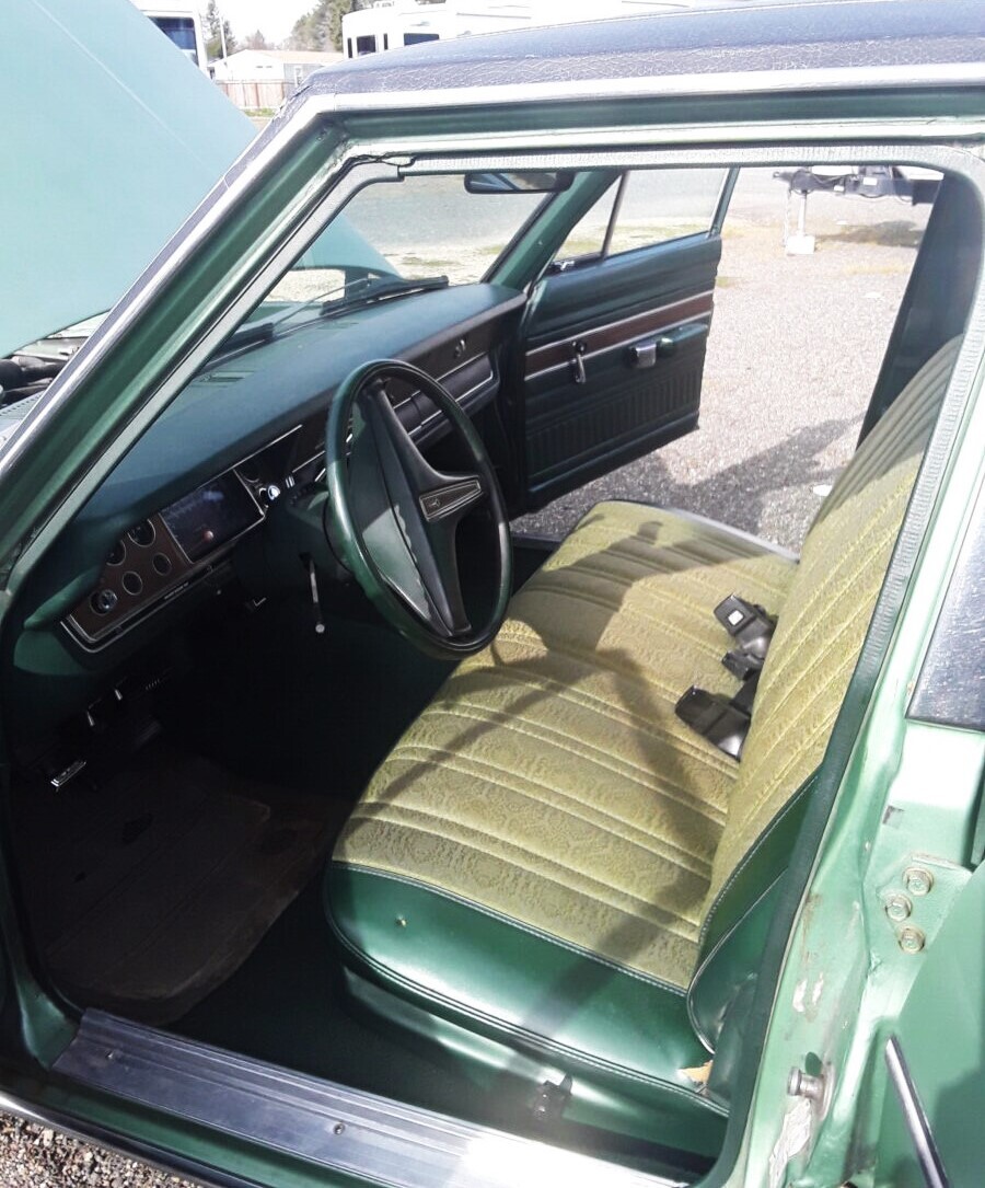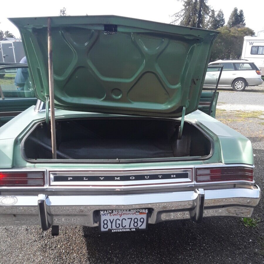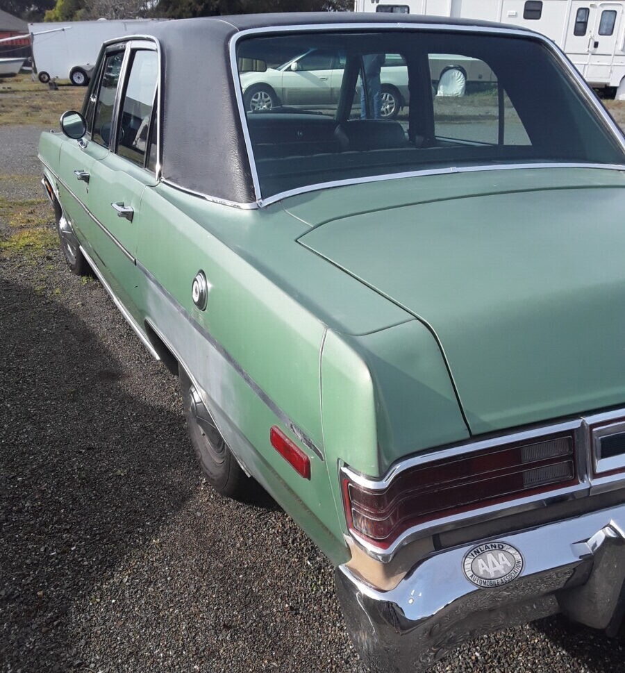 Valiant sales dropped by more than 50% in 1975, but that’s because 1974 was a record year thanks to the movement toward smaller cars after the ’73 OPEC oil embargo. About 17,800 of the higher-end Valiant like the seller’s sedan was built in ‘75. At 75,000 miles, this Plymouth seems to have led a softer life but is far from perfect. While the interior has just a minor flaw or two, the green paint is fading and there is a touch of rust by the driver’s side rear wheel well where some grey primer has been applied. Also, one of the hinges on the trunk lid is broken and a broomstick is needed to prop it open. But the matching vinyl top seems to be in top condition.