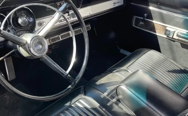 Another cool mid-sixties coupe with a six. That bronze looks really good on this car, and since the exterior looks so nice, I’d just repair and blend paint on the pass side fender and enjoy putting some miles on it.