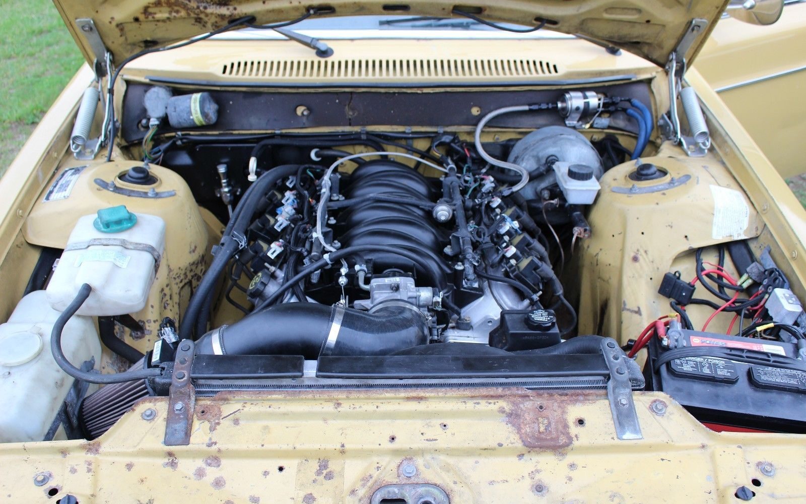 From the detail photos ,very nicely done. I have to wonder before the transplant why not paint and clean the engine bay and chassis?