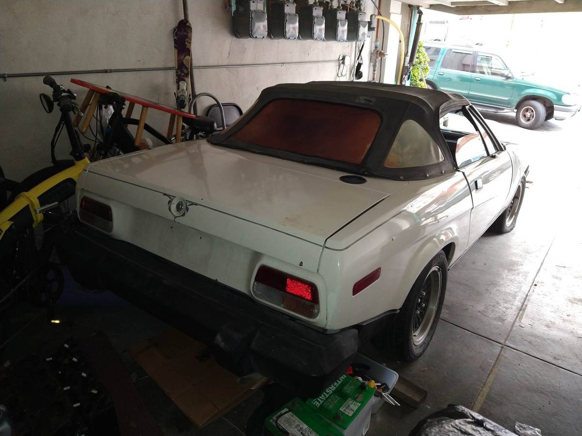 Fuel injection did not come “later in the production cycle” but was there from the beginning on the 1980 California TR8s. Those cars had fuel injection while the 49-state cars were carbureted (dual Zenith Strombergs). For 1981 all were fuel injected and the carbs were dropped. This car with Edelbrock manifold and 4 barrel has no chance of passing smog in CA, which might be why it’s been sitting for years, but at least the original carb setup apparently can be included in the sale. Also, the seller calls it a 1982, which isn’t possible since none were made after 1981 and the carbed ones like this were 1980 models.