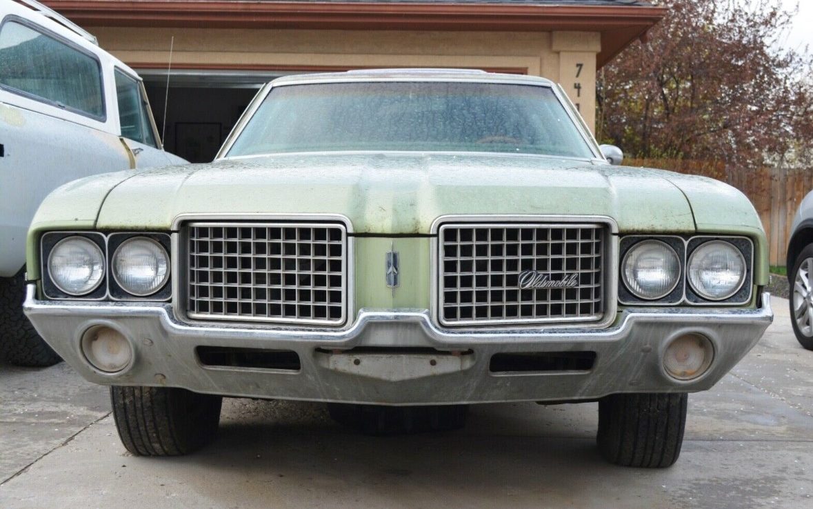 Most cars went to fatter, uglier bumpers after 1972, and an all-new cutlass appeared in ’73, making this grille the last of its kind. The body shows few dents, though the paint is shot. Technically a two-owner car, this Cutlass served a single master for all its driving miles, a number excluded from the listing, but likely 130,000 or 180,000 miles judging from the wear and odometer.