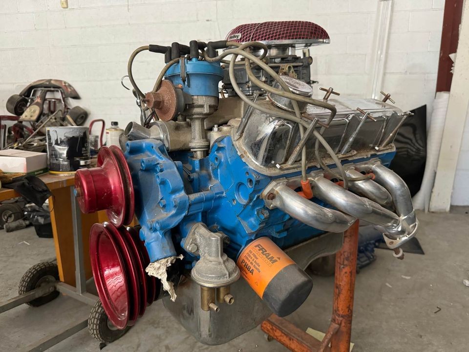 This was probably done decades ago, in the late-70’s, maybe early-80’s it wasn’t unusual to see shortened cars with or without chopped tops in a lot of enthusiast magazines and the occasional show. I know a guy that shortened a 64 El Camino, flared the rear fenders and installed a tunnel rammed big block. These cars subject to these modifications weren’t cream puffs to start with, they tended to be worn out or beaters that were at the bottom of the depreciation curve and were on a one way path to the wrecking yard. No matter how gaudy they are, they were a product of a specific time. Based on the picture of the engine the amount of corrosion and dust on the horizontal surfaces suggest it has beet sitting uncovered in the corner of a shop for many many years.