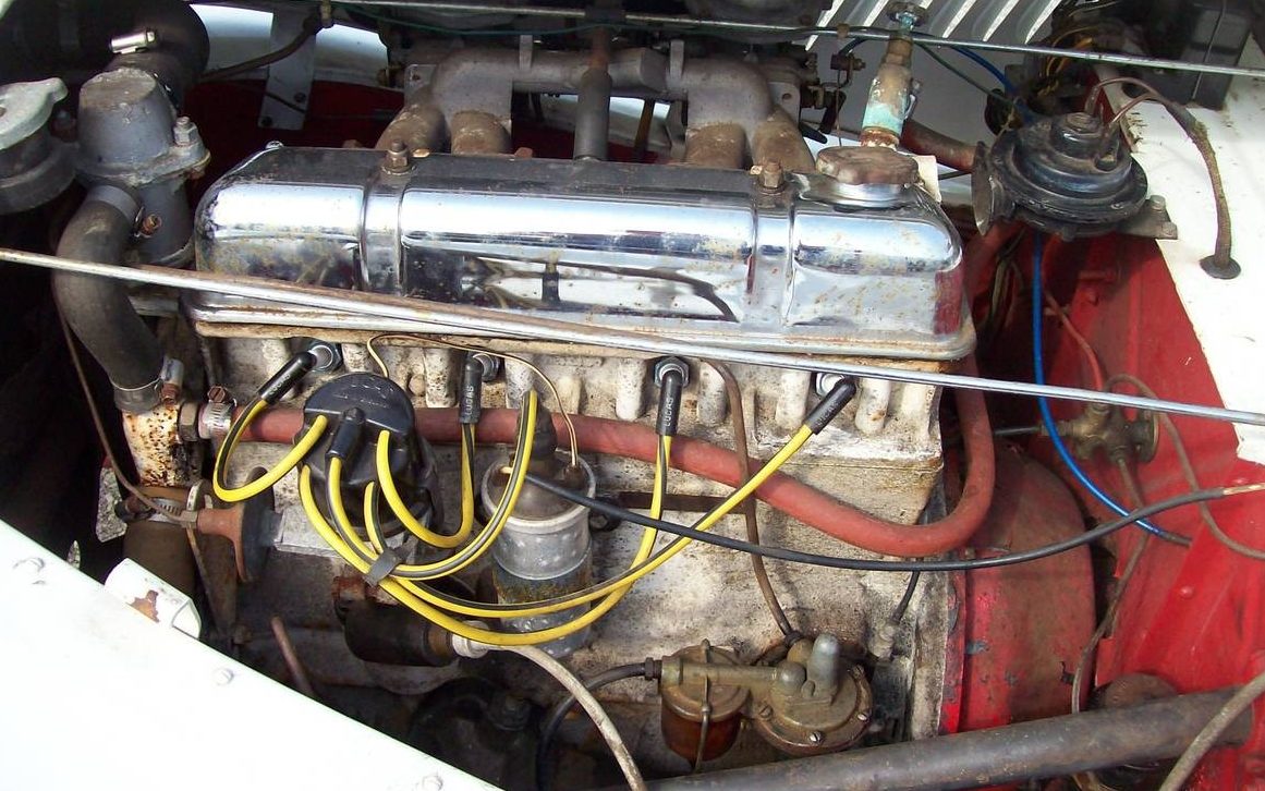 This car is referenced as needing cosmetics, per the other website, and that is evident. The paint is tired and flaking but the “BODY AND FRAME ARE ALL SOLID WITH NO RUST”, per the seller. He even states that everything works on this car which may be a first for a 54-year-old British sportscar – there is usually something out of kilter. The bumpers are in sound shape and still have chrome luster as do the wire wheels, they’re not the least bid grody. It is also nice to see those straight and well-aligned bumpers as bent and mangled ones are an exterior aspect frequently encountered on sportscars with low ground clearance. Rounding out the exterior is the folding canvas top, from what can be spied it looks to be in very usable condition. The only item of note is the two exposed screws attached to the bottom of the horizontal grille trim, their placement seems wrong based on other examples reviewed. Maybe some component of the trim is missing and this is the result.