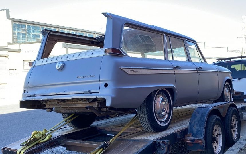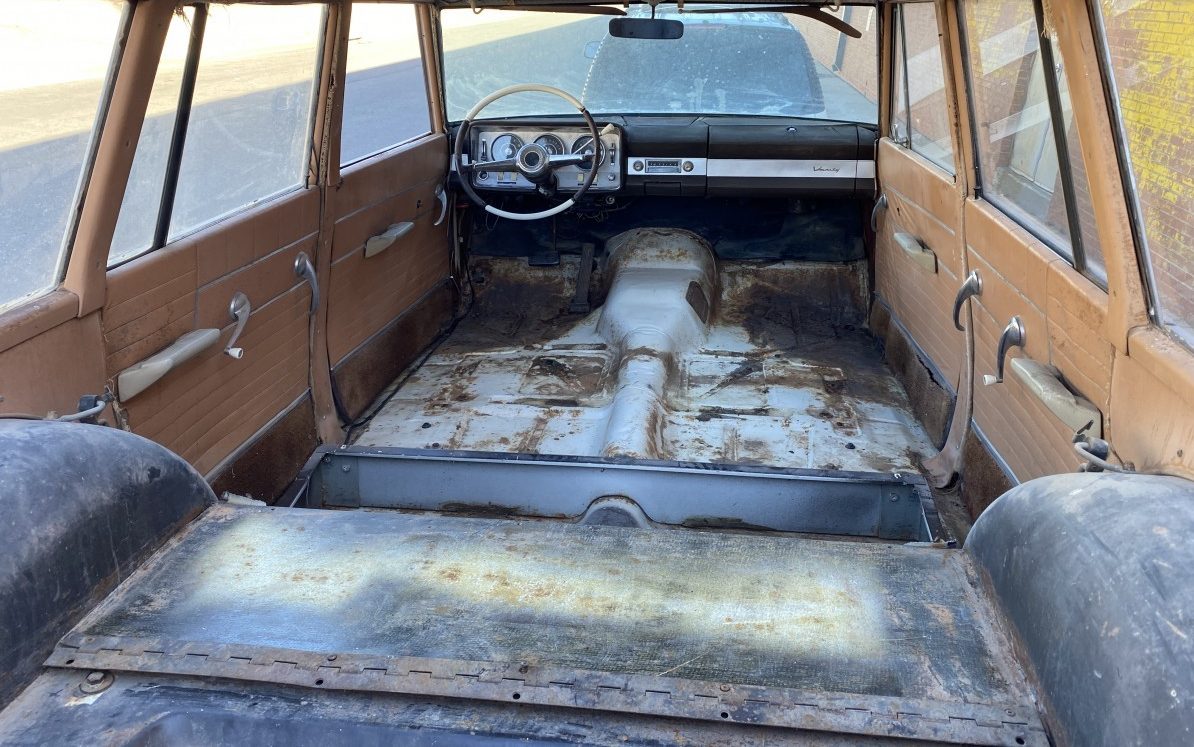 The most obvious feature of this wagon is its sliding roof which is pictured in the open position – an image of it in the closed position as not included in the listing. The body is pretty well covered in gray primer and the seller adds, “The rest of the body is quite straight but may need a little attention prior to paint“. There are some spare parts included in the sale but the rear bumper doesn’t appear to be one of them. All of the unique station wagon trim looks to be in place and the body panels show as being free of crash damage or other foibles. That’s a nice set of Studebaker wheel covers!