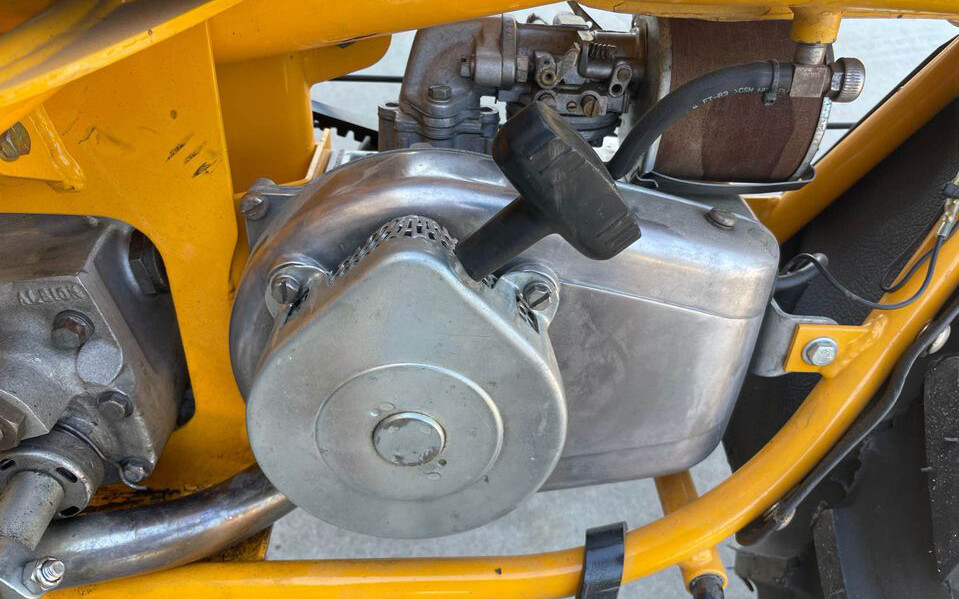 The engine is a Chrysler Power-Bee (West Bend) 134-cc two-stroke single-cylinder and the seller says that this one needs work on the recoil as seen in the photo above. The great part of these engines is that they also have a kick start and I’ve never used the pull-starter to start my Rokon. They have a three-speed transmission and we all know that both wheels provide traction so you can climb almost anything, albeit very slowly. Are there any Rokon owners or fans out there?