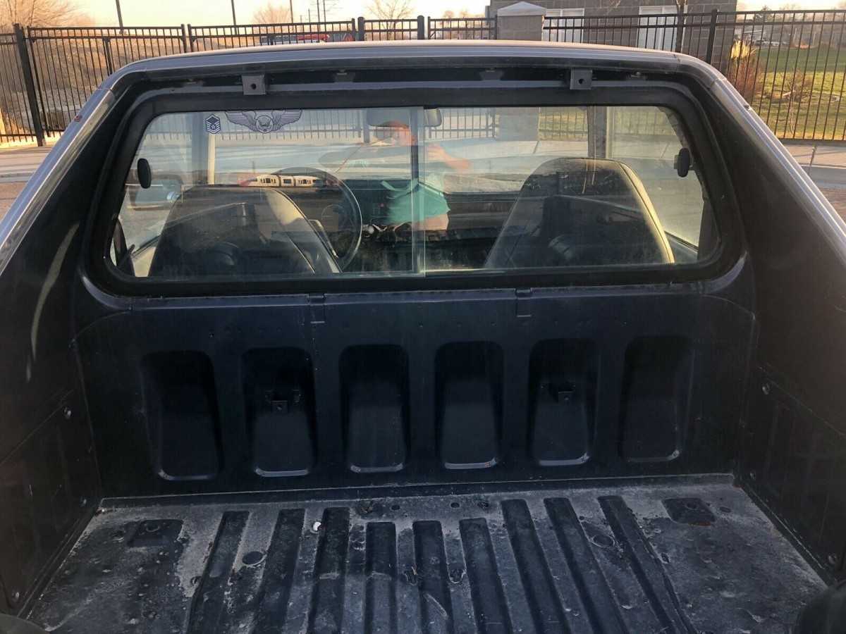 While the body looks good, I’m not sure the blue paint is as “amazing” as the seller believes, but very presentable. The plastic/rubber parts associated with the bumpers are nicked and faded and the bed looks scratched from hauling stuff all these years. But rust doesn’t appear to be a problem, so once you fixed the engine, you could begin using it immediately.