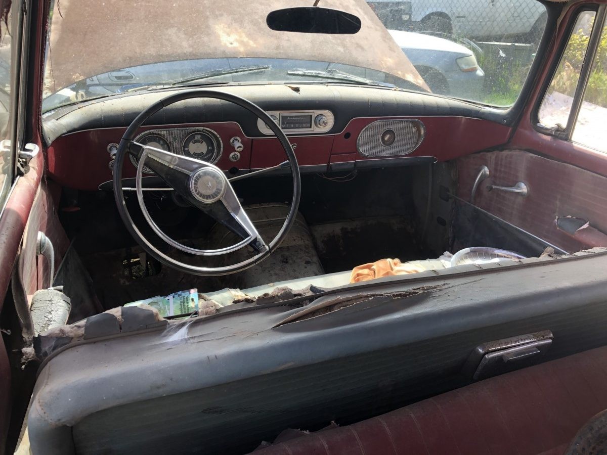 Sales (by Studebaker standards) were brisk in 1960. Out of 120,465 overall cars, 17,900 of them were 4-door station wagons like the seller’s. The 259 cubic inch V8 was the biggest engine available to the Lark, and this wagon has one. It’s not running due to some missing hoses and the wiring disconnected as the result of a previous owner working to replace the harness. It’s paired with an automatic transmission. There is no indication when the car was last on the road,