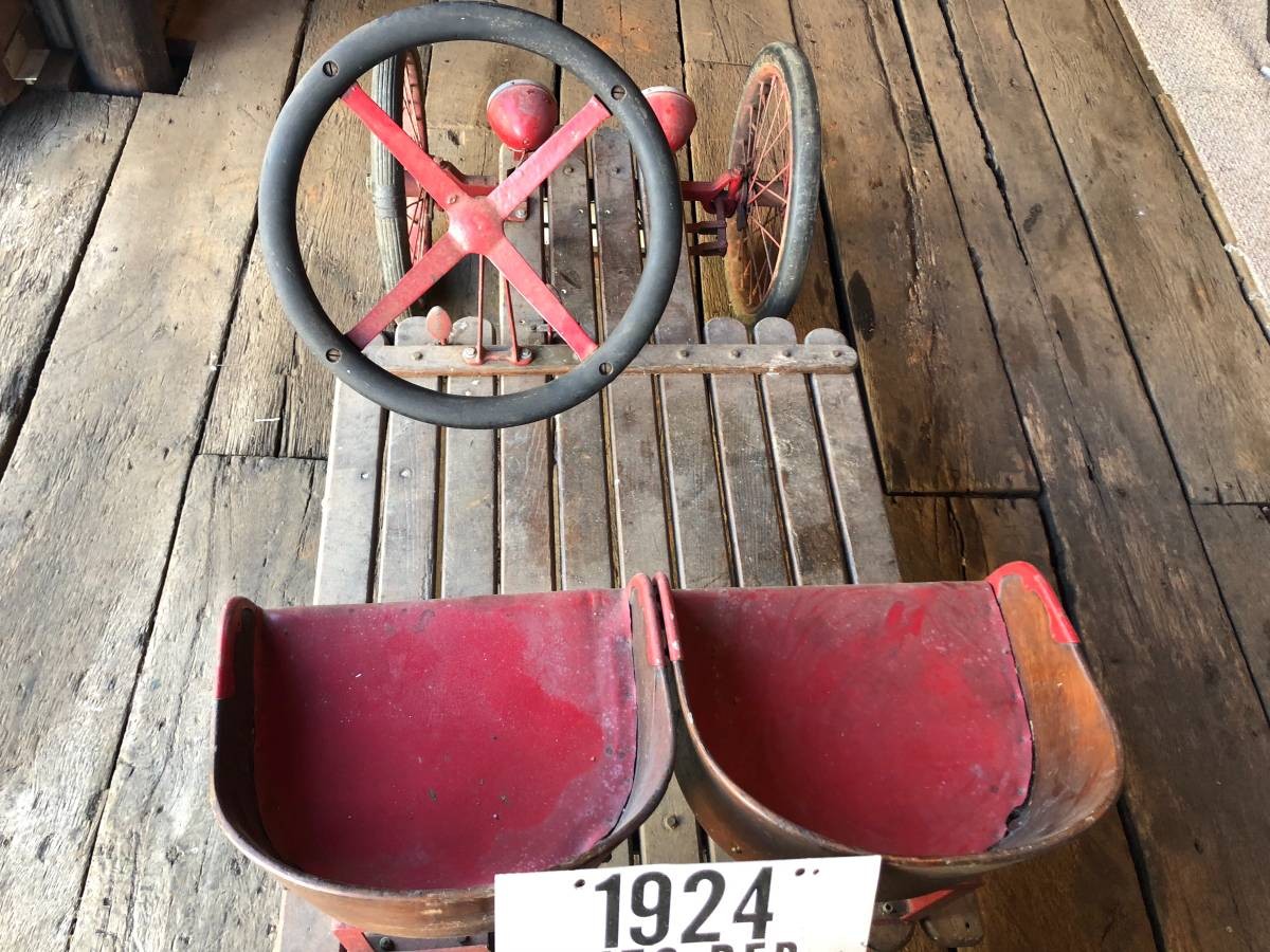Well, it is an antique. I’m not sure what the market was for this. By 1924, most cars were enclosed, and toys in 1924 weren’t this fancy, although, there are vintage pics of seemingly wealthy children riding these. Today, that’s almost $2,000 dollars. Maybe in an industrial setting, like Adam says. Probably a range of about 6 blocks. The gas jobs had the Brigg’s “Motor Wheel” attachment, and odd contraption, but I’m sure more than one person took their gas powered Red Bug to work, and was the envy of all their co-workers.