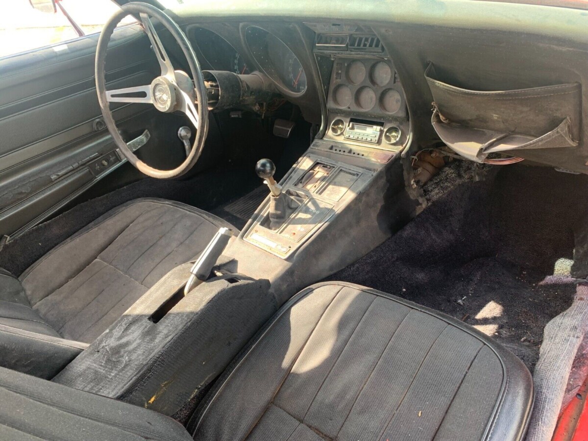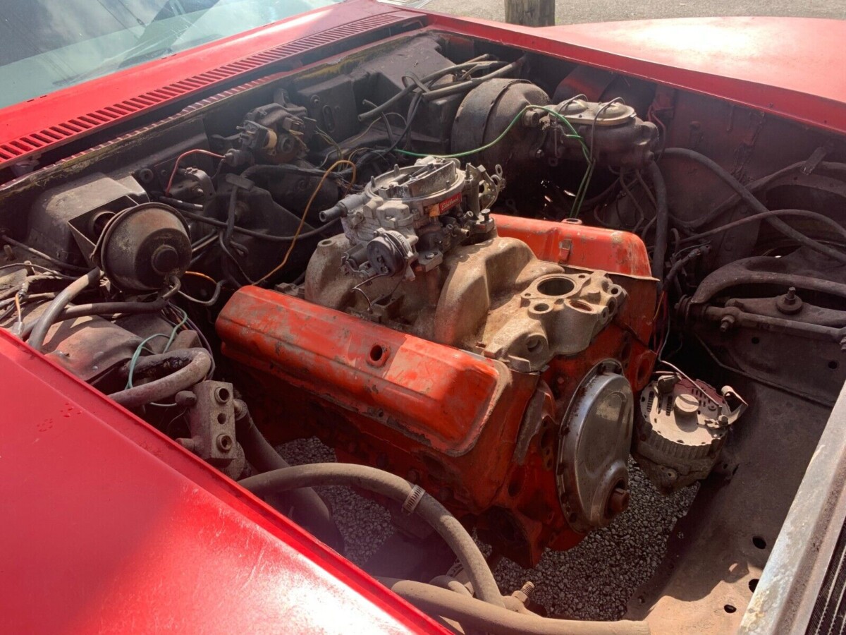 Of the 38,762 Corvettes built in 1969, 16,633 of them were convertibles. This one has the removable hardtop but the drop-top hardware for the car is no longer present. Monza Red was one of the colors offered on the Corvette that year and we assume that’s the hue here, although it could have been resprayed in the past 53 years. The black interior looks mostly intact but quite dirty, suggesting that the top was not attached for much of the time this car was in storage.