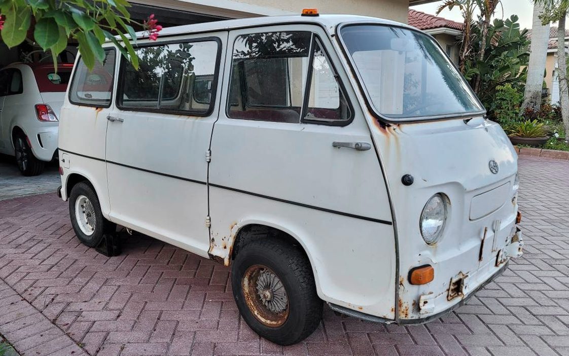 The United States is around twenty-six times bigger in land area than the country of Japan is and it almost seems like some of our trucks and SUVs are twenty-six times bigger than this 1969 Subaru 360 Sambar van. This is one small vehicle. The seller has this 9.8-foot-long microvan posted here on craigslist in West Palm Beach, Florida and they’re asking $13,500 for it.
