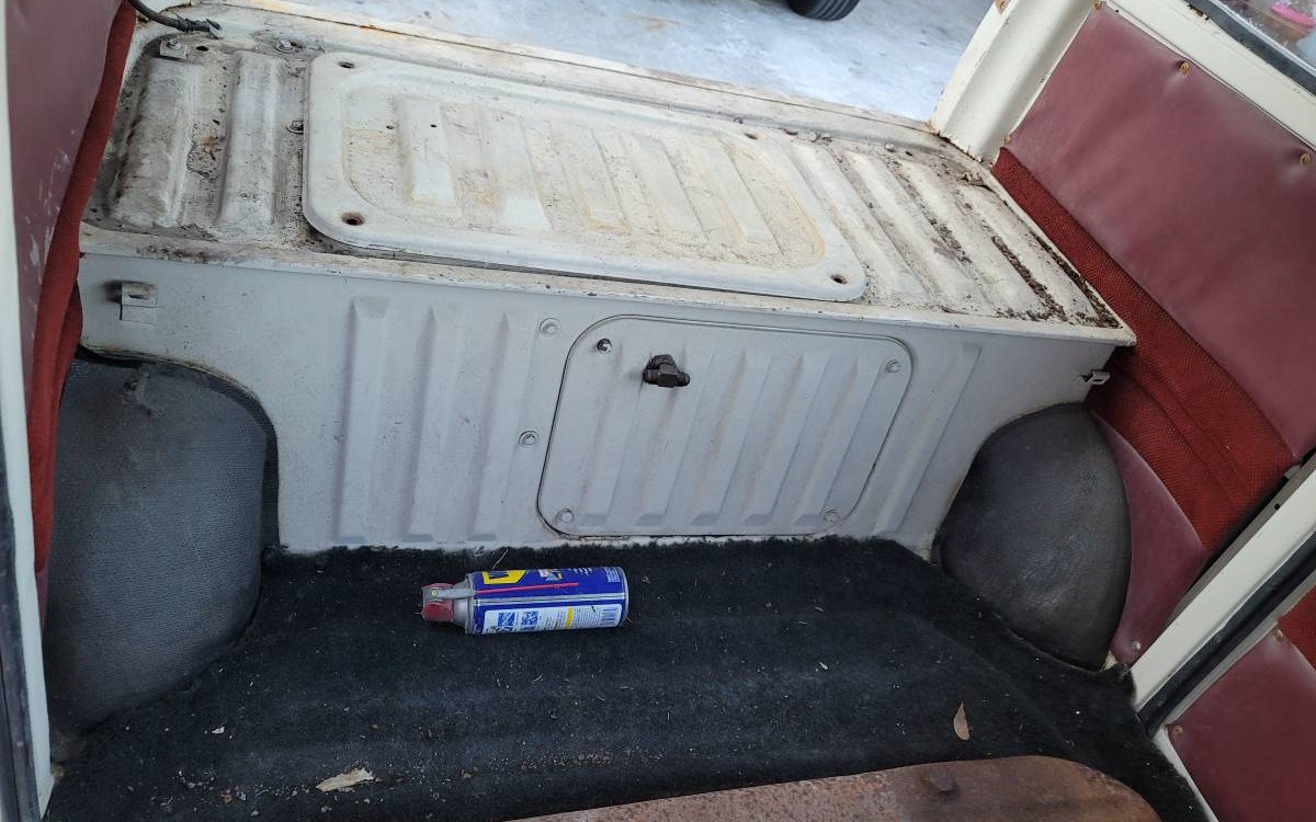 The seller has provided 24 photos with a decent variety of angles which is nice. They show what looks like a really nice van compared to most that we see which aren’t restored. It sure doesn’t look like it would take much to restore this van compared to most of the rusty clunkers out there. The underside looks solid and I only see a couple of areas where rust has poked through that thin metal on the body so this one is very restorable. And, at less than ten feet in length, five feet high, and just over four feet in width, you could probably restore it in a single-car garage or in half of your two-car garage.