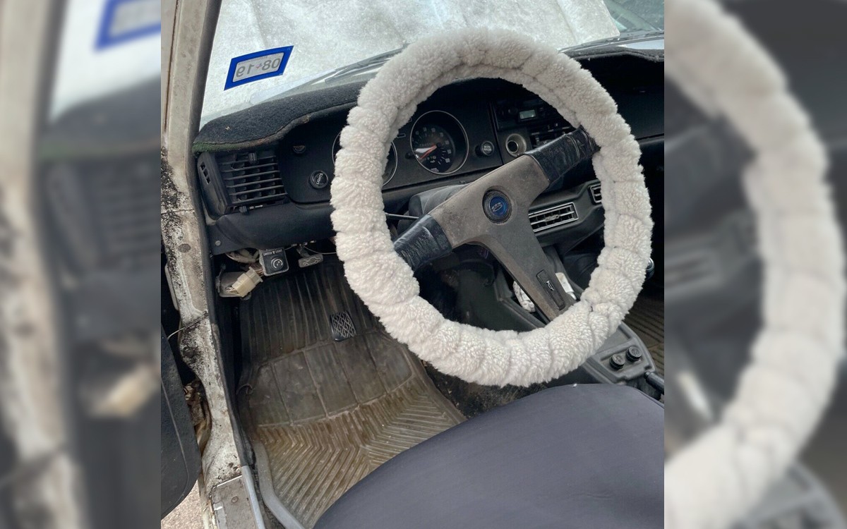 The steering wheel is toast as is the dash, unfortunately, or parts of the dash. This is a factory AC car which is mind-blowing for me given how little power my car had. Although, I had the smaller 1.2L engine, this one is the 1.6 “hemi”. The back seat looks surprisingly good but the trunk is a bit scary. Still, these cars are super rare and hopefully the buyer will restore it, there just aren’t many around anymore.