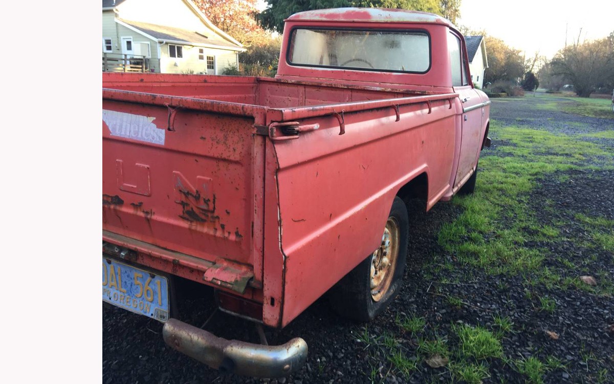 I had one of these (a 1959) 20 years ago. It really was a tiny truck. Two adults would sit shoulder to shoulder. The previous owner had raised it an inch or two which made it really unsafe. I swear that if you were at a stop, cut the wheel hard, and popped the clutch, it would roll over. On the highway it was fine at 55-60, but if you hit a small bump at 20-25 mph, it would deliver a terrible shimmy, so bad, that you had to come to a complete stop to eliminate it. I jury-rigged a damper which got rid of the problem. The body on it was in incredible shape rust wise. I think I paid $250 for it, drove it a few years, and sold it for $250.