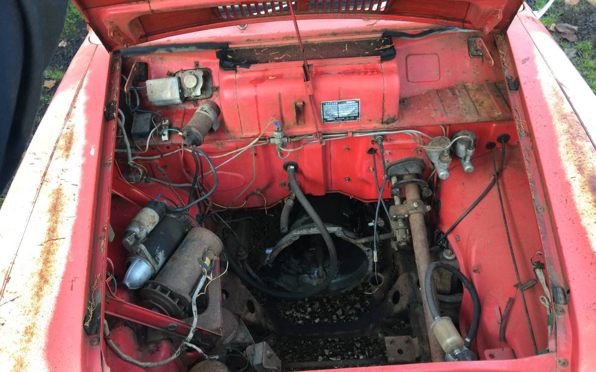 Here’s where the work will come in, though. Squeezing an SBC in there will be a challenge… No, the “Engine is out, machined and ready to assemble, nothing is missing, carburetor, air cleaner starter, generator, radiator, it’s all here!” Get the coffee table ready, your winter project will be putting this 1.2L inline-four back together again and getting this truck in running condition. This example doesn’t appear to have power steering or power brakes (kidding!)… Seriously, this would be a fun project for anyone with an open garage stall. I love the way it looks now, just get it working like new and use it as a little hauler.