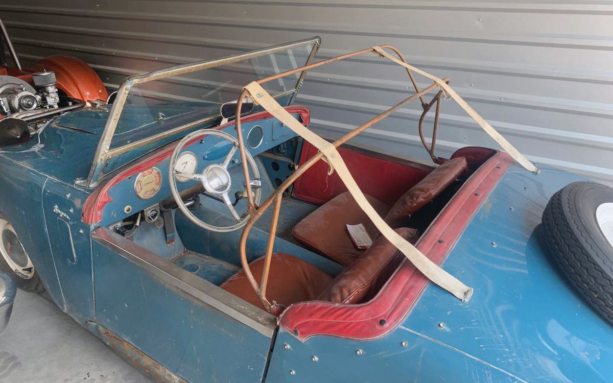 You can see that this is a project car but according to the seller, it’s all original right down to the paint. If that’s the case, I wouldn’t change a thing, cosmetically. At least as far as a full restoration goes. Although, there is some rust on the driver’s side rocker panel and floor pan, so that would have to somehow be fixed without ruining the original finish on the rest of the car or making it look like a patchwork quilt. A new top is in order as you can see, that one won’t keep out much rain. The red interior looks great for being older than most Barn Finds readers and the steering wheel and gauges are perfectly aged, like a fine wine in a really small bottle.