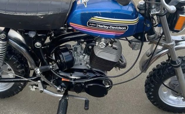 I owned one of these in my motorcycle days. Had to carry it out of basement. Hadn’t run in years. Got it going and sold it to a Harley dealer. I had a Honda mini trail too. The Harley was faster and a 2 stroke. The Honda started every time. Harley started sometimes.