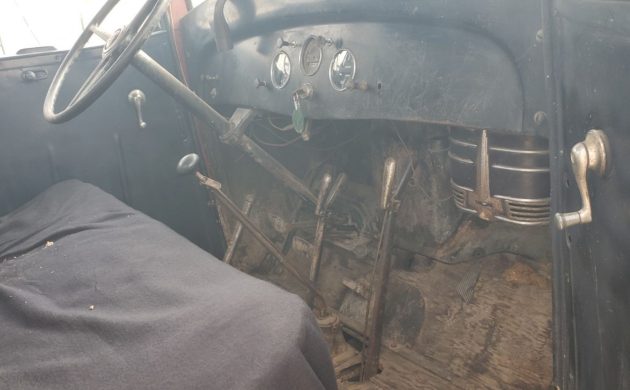 Inside, the cabin is basic and purposeful, typical of a mid-’30s work vehicle. The seller hasn’t addressed the lighting or hydraulic brake system, but reports the hand brake works well enough for yard driving.