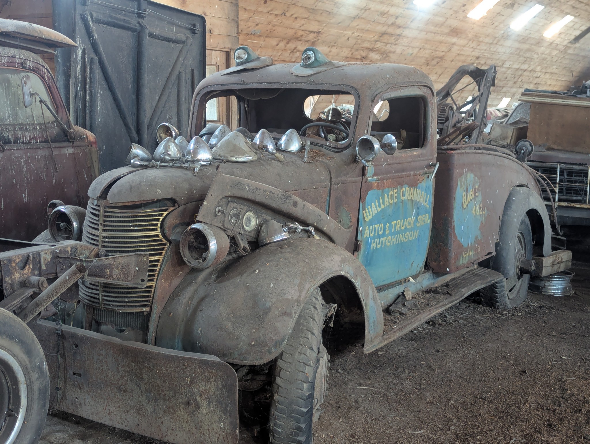 keep as is, towers in the 40s, 50s, 60s were much like this, not show pieces and highly respected any time you needed roadside help. Note that the owner must have worked many early morning, late night tows, even during winter–this one has a heater. Spit and polish would be a disservice to it’s lifelong existence, keep it as is.