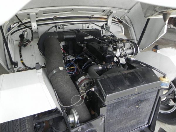 – This car has a single Weber carb in place of two of the smallest SUs. It also looks to be in pretty good condition.