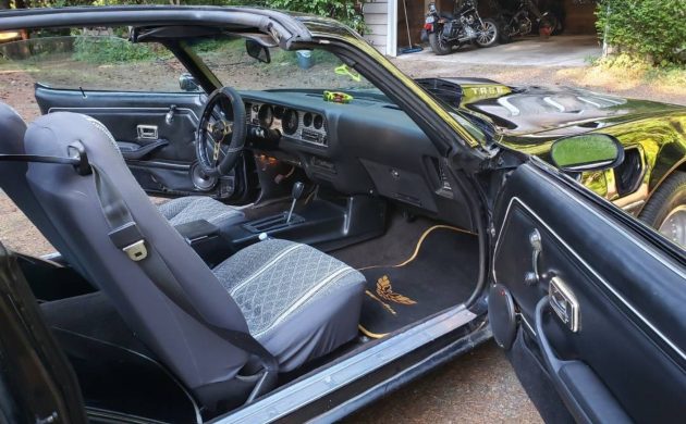 The result is a Trans Am that runs strong and drives straight, still wearing its battle scars proudly. Scratches, dings, and even the blistered hood bird remain untouched, as the seller decided against repainting, citing its authentic “Smokey and the Bandit life” patina as something you simply can’t fake. The black paint is said to be mostly original, with no evidence of Bondo or significant repairs—only a couple of panels appear to have been resprayed, likely for cosmetic reasons decades ago.