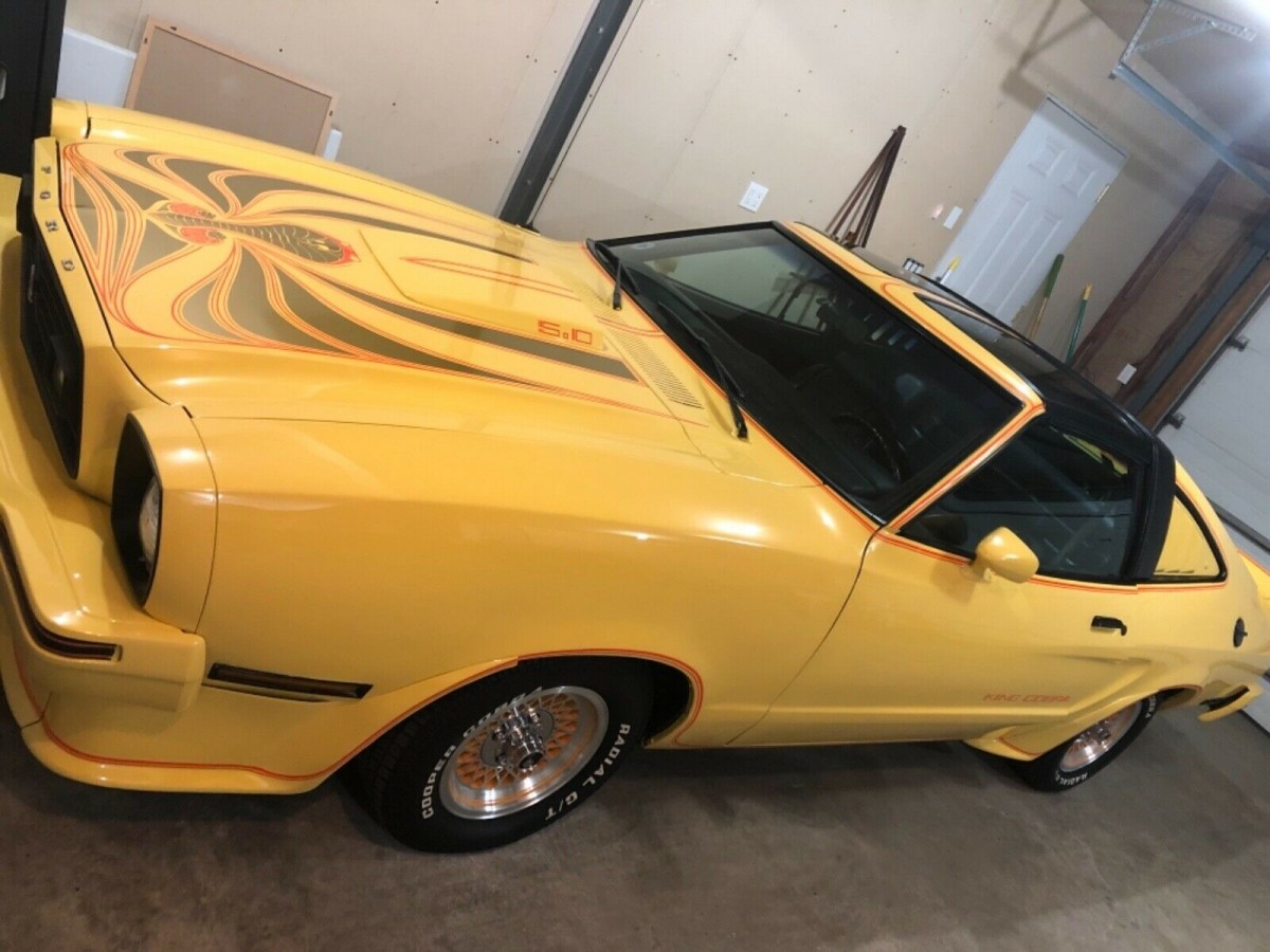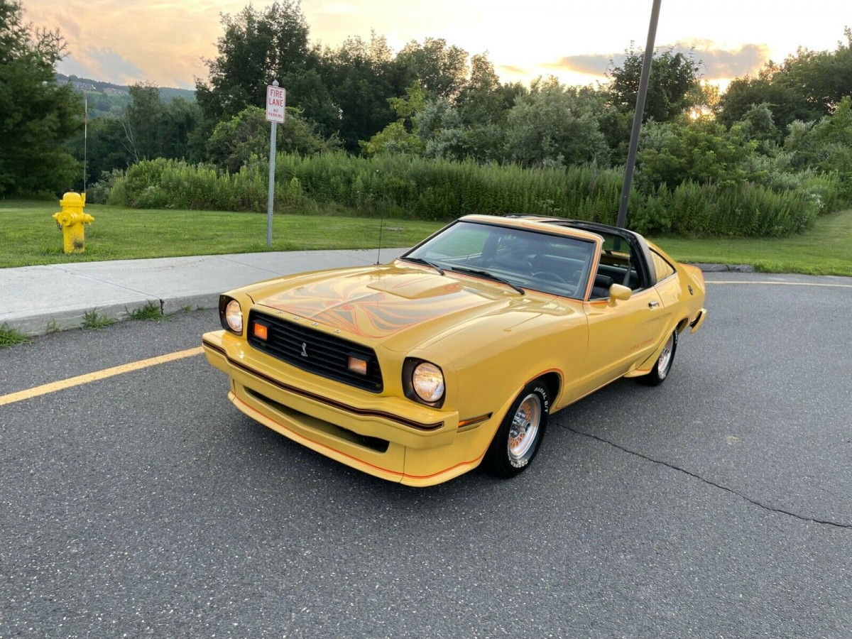 You don’t usually see this color on Mustang II King Cobras. They are more commonly seen in white, black and red. This car is also equipped with T-Tops. The seller states than about 1,200 King Cobras were produced with this option. The car is said to be rust free and had a recent repaint and new graphics applied that were sourced from Phoenix Graphics. You might need this car to complete your Mustang collection or to be the only one at a car show with a yellow Mustang II King Cobra.