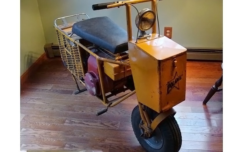 The engine is supposed to be red, or at least period literature shows red engines but then again some show body-colored engines. In those days, companies would almost change things depending on what they had in stock or if it was the end of a production run. Most literature shows either a 6-hp Lausen engine or a 3.5-hp Lausen or Tecumseh, depending on the year. This one has “been in the house for 6-8 years but it ran great before and I’ll run it for any serious buyer. Everything works including the light.” I almost bought a nice 1962 Trail Tractor about a year ago but $2,500 + cross country shipping was more than I could justify, already being filled to the gills with small, motorized two-wheelers that I rarely use. I would still like to have one someday. Have any of you heard of the Polaris Trail Tractor?