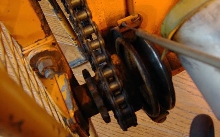 There is an adjustable sprocket for two-speed use ranging from 15 to around 30 mph. If you haven’t gone 30 mph on a scooter or minibike I can tell you that it really feels like you’re movin’. This example has the optional head and tail light which means that it has a little 12-volt alternator. Lights are good. Fire bad. (old SNL Phil Hartman skit, sorry) The seller “bought this from an old Polaris dealer who had it in his dealerships mini-museum for a lot of years.” They say that it’s “100% original including the paint, tires, and belt.”