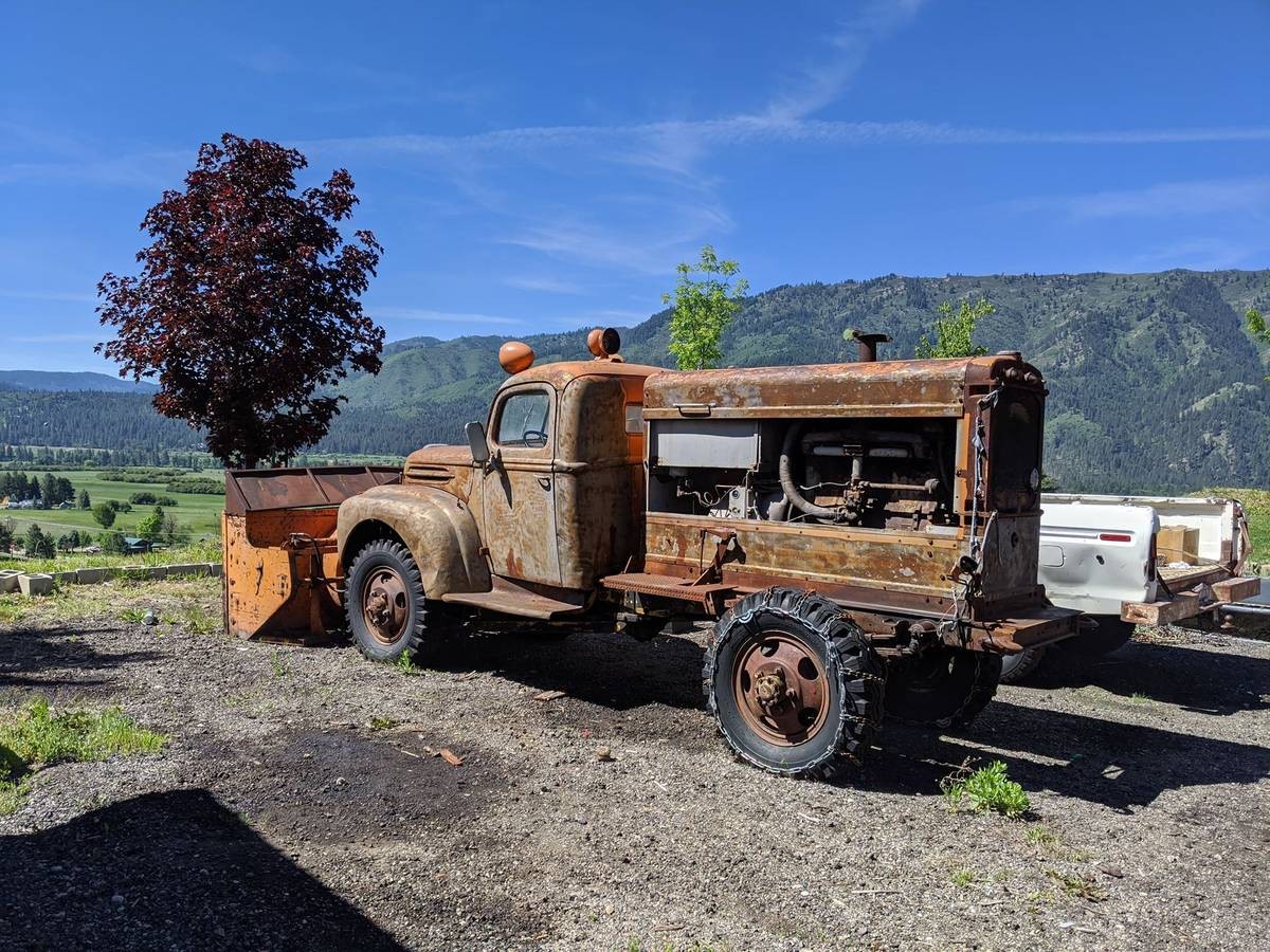 Nice truck to have although I don’t really know if I could use it up to its full potential. It would be a good snow remover for my driveway BOTH times each winter in the Chinook Belt. 1948? No, it’s a ’42 – ’47. I’m guessing possibly a ’45 or ’46. The ’42 model had the ‘FORD’ in a pot metal casting on each side of the hood. Starting in ’45 it was stamped. The bright trim around the instrument cluster was used from ’40 – ’42 and again in ’45 but was changed to a cream color in ’46 and stayed that way through ’47. The blower engine looks like an International WK 40 tractor unit. I guess that would be termed a ‘U-40.’ It dates back to the mid-30s. By ’39 IH was selling the ‘U-9/UD-9’ and the ‘UD-14’ which were 4-cylinder units. IH also sold a ‘UD-18’ six-cylinder which would require a fairly stout truck to carry it, not to mention the diesels were NOT a real good choice for winter operation as you would spend a lot of time just getting the animal started. This truck would be quite an addition to a real enthusiast’s collection. I know I sure wouldn’t turn it down if I had the facilities.