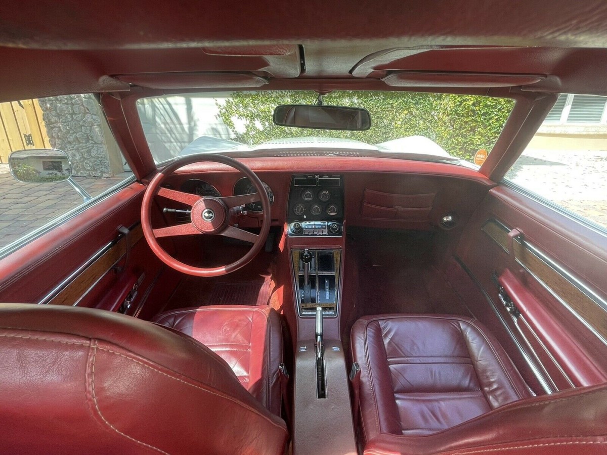 The interior of this car looks original. The Vega GT style steering wheel was a complaint by many enthusiasts and was eventually replaced but was installed on 1977-1979 cars if tilt steering was not ordered. Chevrolet called this interior Firethorn Red (Code 712) and came in vinyl or optional leather. The exterior paint (Classic White Code 10L) was repainted about 25 years ago but looks to have been well maintained as claimed by the seller. The odometer reading is 6,300 and the seller reveals that the car has rolled over once it the Corvette has traveled 106,300 miles.