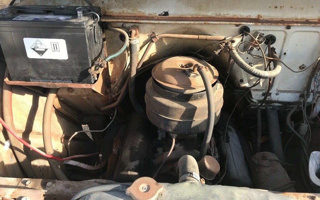 The tightly nestled small block 283 V8 is a runner that is backed up by a 4 speed manual transmission. Clean enough for an old work truck, the engine compartment could be tidied up a bit. Although the current seller drove this truck home upon purchase, the brake system needs attention to get this truck totally road ready. Surprisingly functional, this truck looks like it would need little mechanical work to get it on the road once again. The seller explains that some of the gauges are functional, and even the wipers work. With a little polishing and cleaning this Chevy would be a sweet classic to see on the roads once again.
