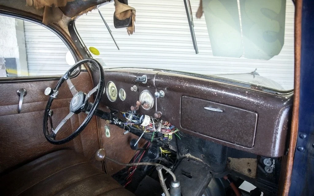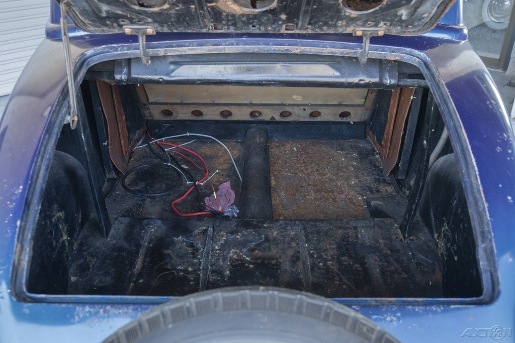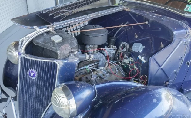 Oh no, there’s more under the hood. It looks like someone has installed a 12-volt conversion with a solid-state voltage regulator and perhaps even an electronic ignition system. There are no pictures that show it, but I imagine it has an alternator conversion, and it definitely has a new starter. Fortunately, the flathead is still under the hood, and in stock form, it was of the 85-horsepower, 221-cubic-inch variety, which breathed through a Ford two-barrel. The seller doesn’t mention anything about the car running or driving, so I’d imagine it’s not.