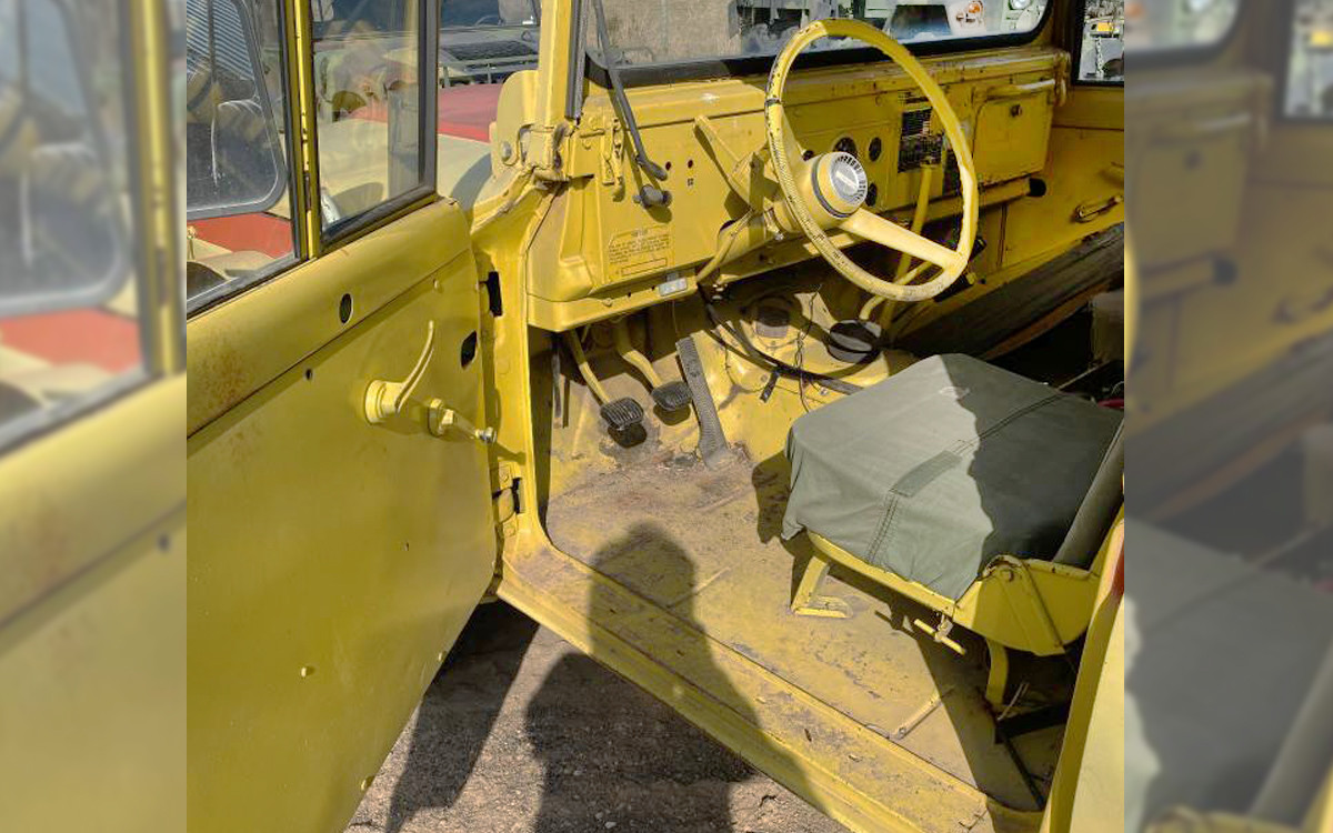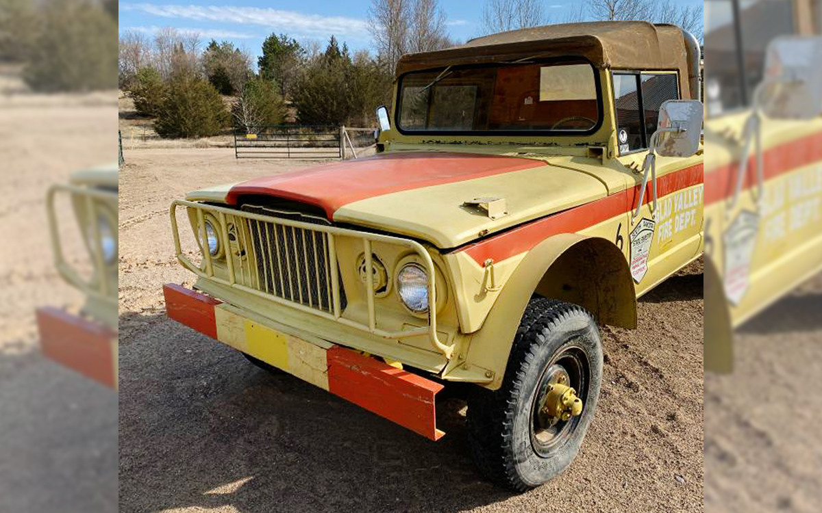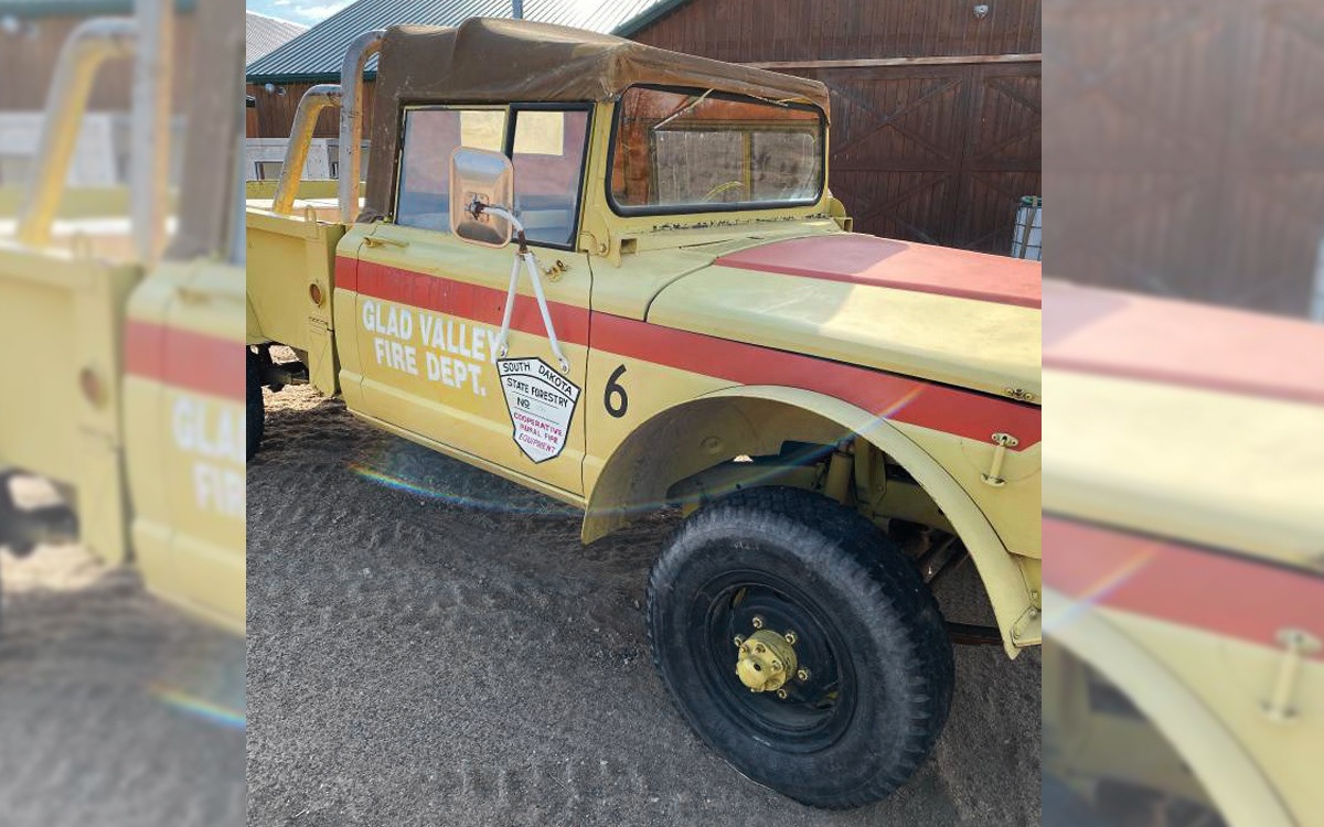With only 28,000 miles and no rust, this 1-1/4 ton Kaiser Jeep pickup appears to be in fantastic condition. The logo on the doors shows it to be or shows that it was a South Dakota State Forestry Department truck and it says Cooperative Rural Fire Equipment on the shield logo, and the lettering on the doors identify it as being from the Glad Valley Fire Department. That appears to be in Meadow, SD in the northwestern part of the state.