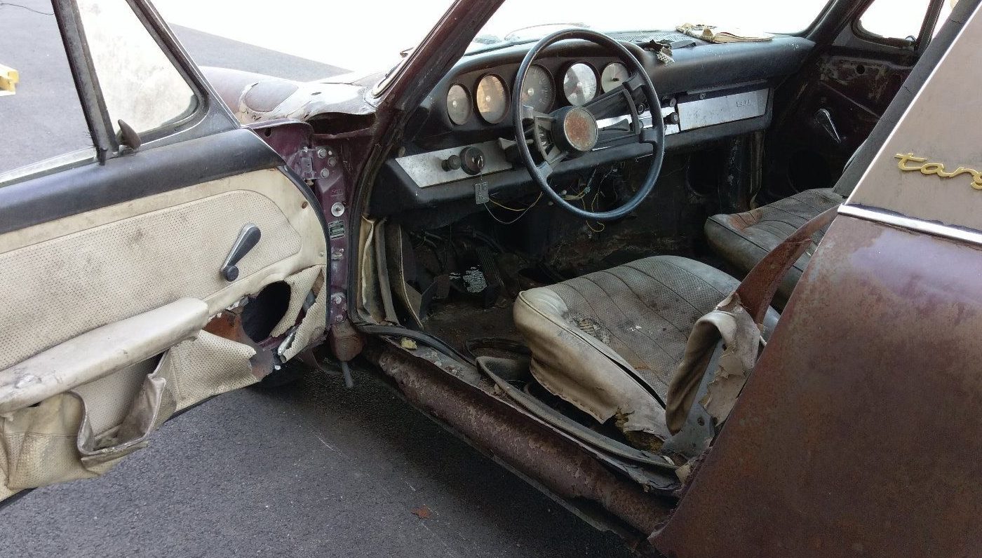 The seller is quite transparent about the extent of rust and body repair needed; as such, this 911 is listed with no reserve. The seller claims the back of the car is better than the front and that it comes with its numbers-matching engine (although, it’s currently in pieces). The rust gets progressively worse as you move to the front of the car, with the door skins, rear quarters and front pan all suffering from extensive corrosion.