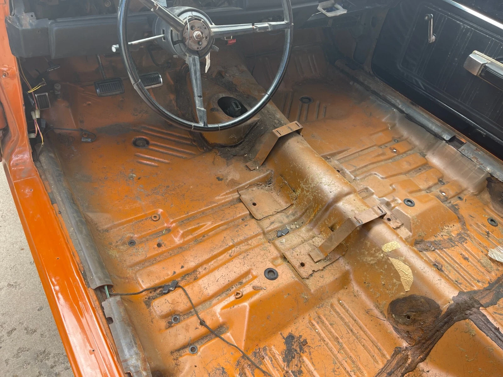 Mopar floors and trunk bottom to die for……kinda odd the motor and trans are matching – to another car…..up pushing 40g’s…..