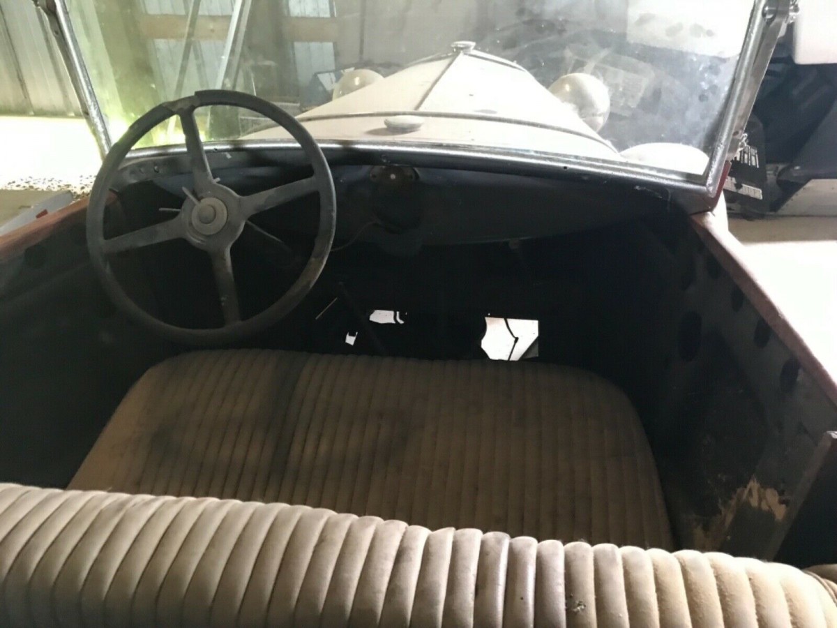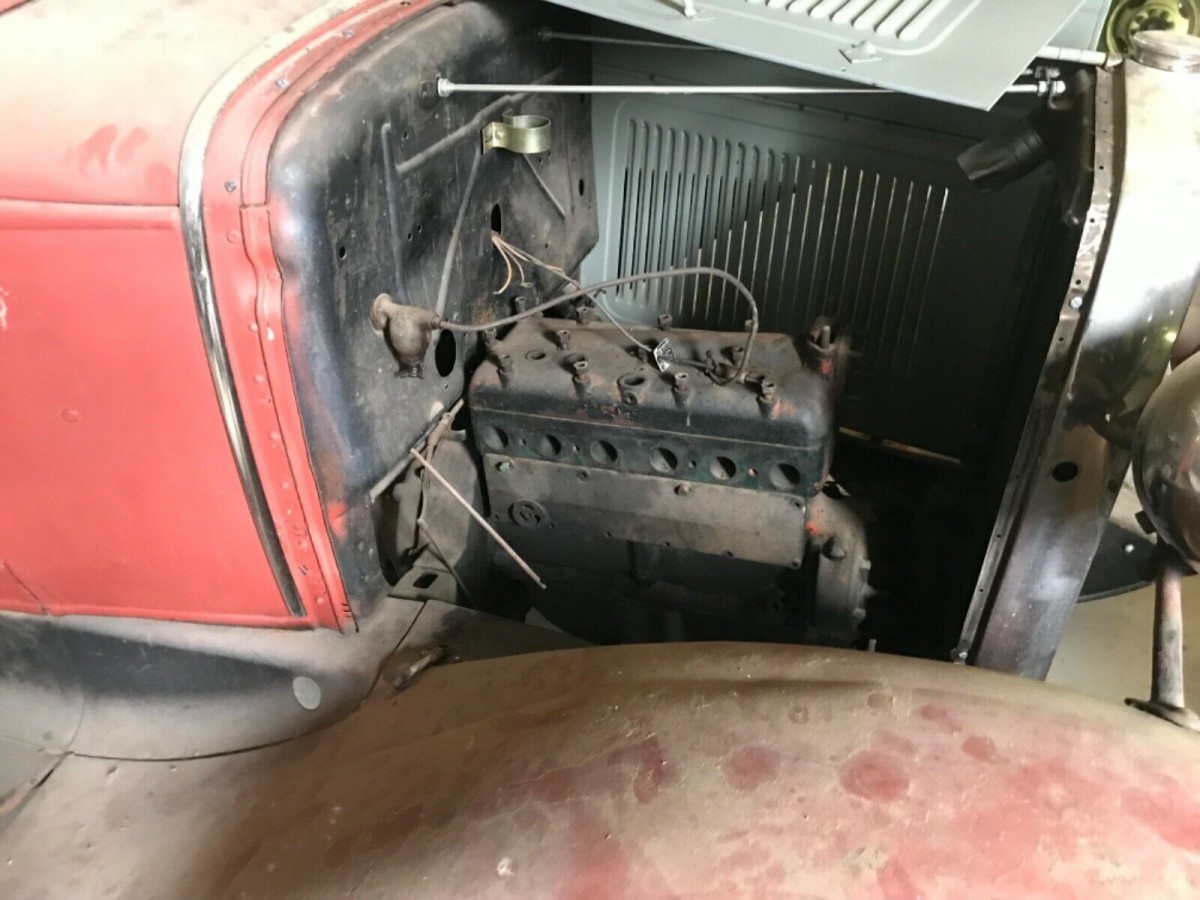 I’m pretty sure that you won’t be shocked to learn that the car doesn’t run, but it is is a roller with an engine and transmission. The state of those mechanical components that are fitted to the car is very much an unknown quantity, and I really don’t like the sight of all of those exposed openings on the engine, because it can allow foreign objects (and critters) to find their way into places that they don’t belong. Still, in a restoration of this type, whipping the cylinder head and sump off an engine to give it a check is no big deal. Of course, if the next owner is considering a street rod project, then all of this may well be a moot point anyway.