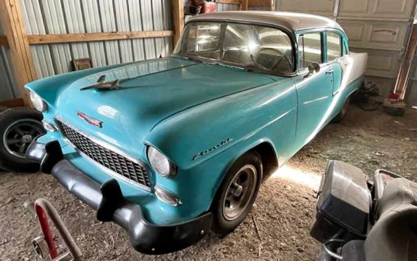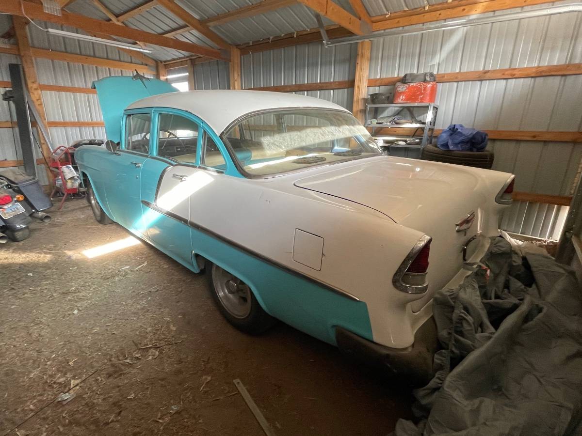 BelAir? Looks like a 210 to me. Not 100% sure but cannot recall ever seeing a 55 4dr. BelAir. Over the years owned two 2dr. BelAir sedans and have seen lots of 4dr. 210’s. Maybe it’s my age and I’m losing it if I am incorrect.