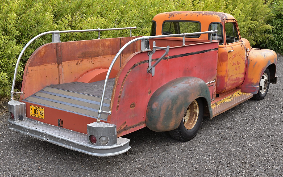 The GMC is a pretty solid old vehicle, and the only rust of any note is an area in the rear corner of the cab on the driver’s side. This is a pretty common occurrence, and repair patches for this are available. There is plenty of surface corrosion, but this is all part of the great look of the vehicle. The next owner would probably find it tempting to apply a satin clear coat to retain the vehicle’s great look. The GMC is fitted with all new tinted glass, along with all new window seals. About the only weakness with the Truck is the fact that due to the fact that it rides so low, the rear bumper can drag on certain sloping surfaces such as driveways. That is something that will need to be addressed sooner rather than later, because the owner supplies this YouTube video, and the bumper can be heard scraping on a driveway with a relatively shallow approach.