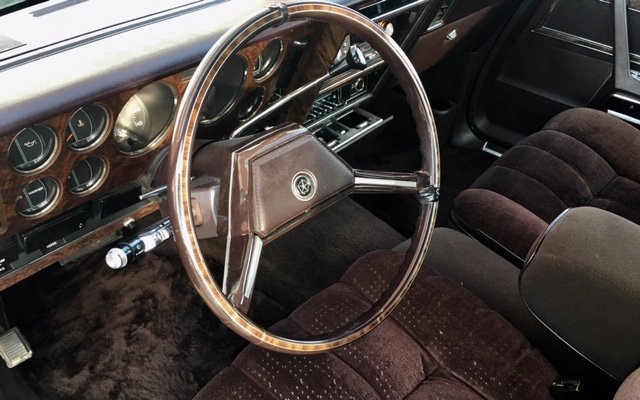 Now that is a good-looking automobile! The color suits it very well and that imposing grill with the landau roof treatment really give this car a formal, high-end look. Low miles, well-optioned and a plush interior checks all the boxes. The dark brown interior seems an unusual color choice but it compliments the exterior nicely. The rich wood dash is a beautiful touch. This is a car anyone would love to have and I’m sure it will see spirited bidding. The new owner should be very pleased with this gem.