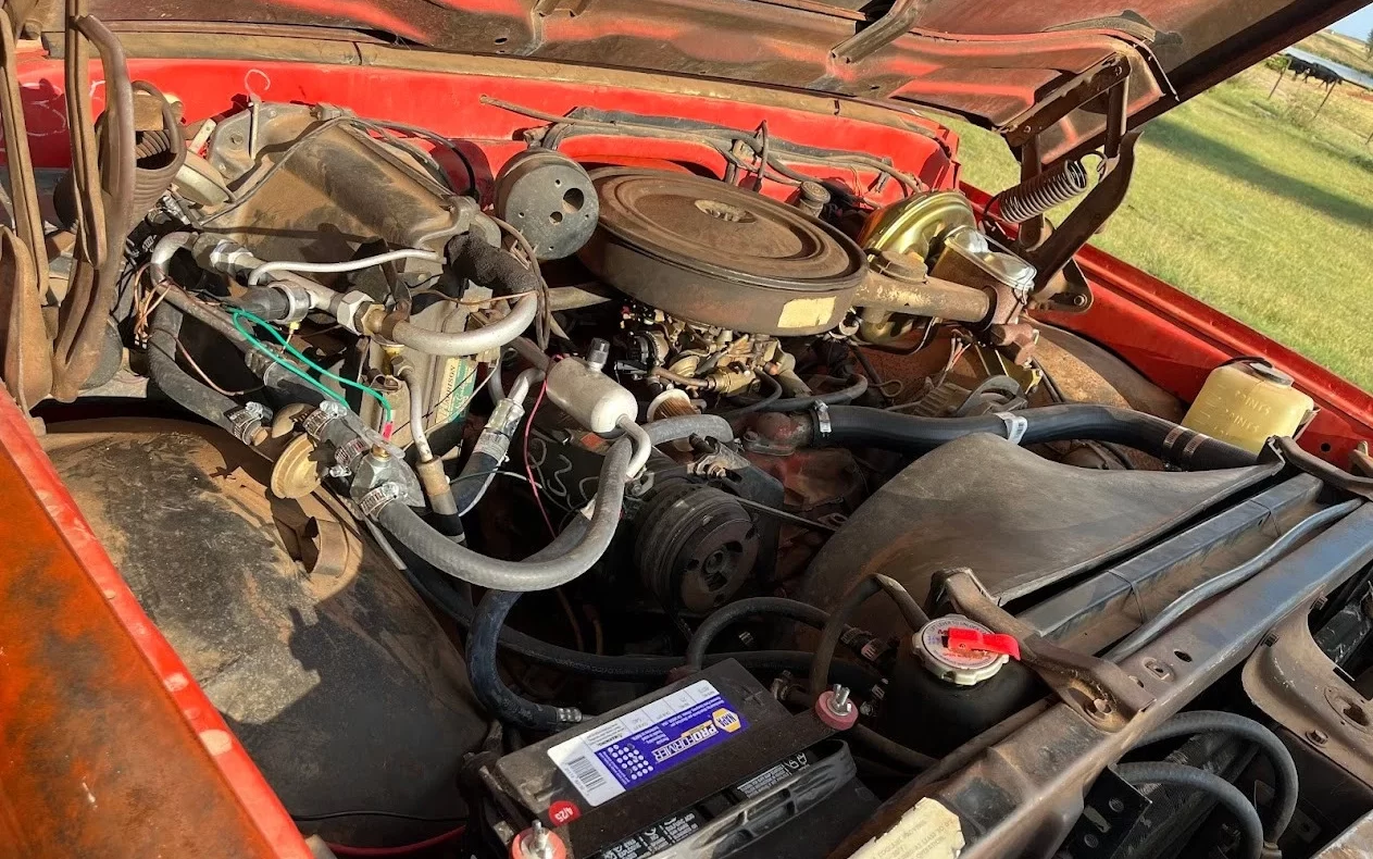 New R12 ? I didn’t know the stuff still existed save for an undercover place that charges $150 per once. But at least the hoses do look nice and new. Upon close up the Quadrajet was upgraded to an electric choke model. Always fun to see the truck like environment and dashboard compared to the 73 up that was a total departure and more car like. The price might be a bit high but it should find a new home soon