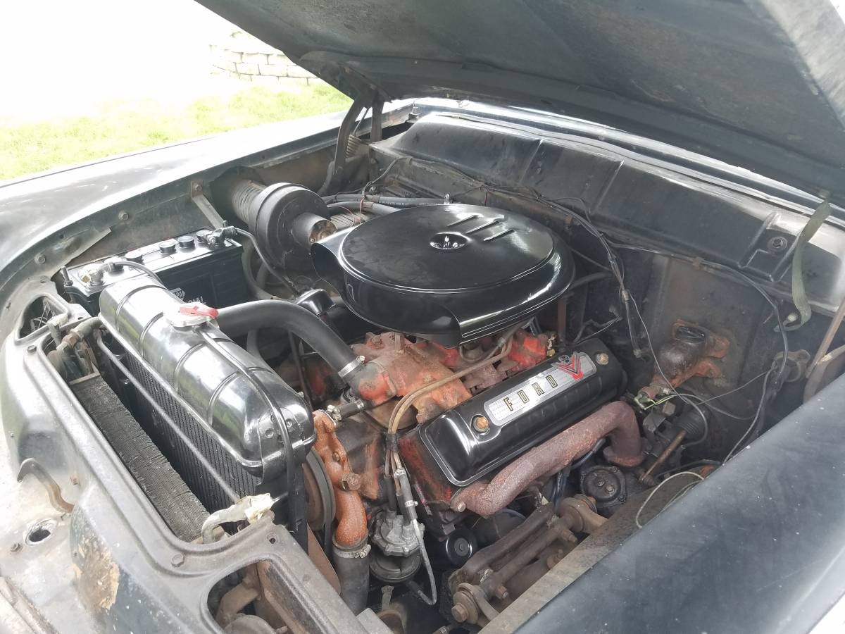 The upholstery on the 3rd seat is correct, the rest appears to have been replaced with something more modern. The valve covers are the same as the one I had, which had the optional 312, w/3-speed & o/d. It had 12k on it when I bought it and had never been apart (aside from the drivers side doors and center pillar where a Pontiac tried to drive through it!).