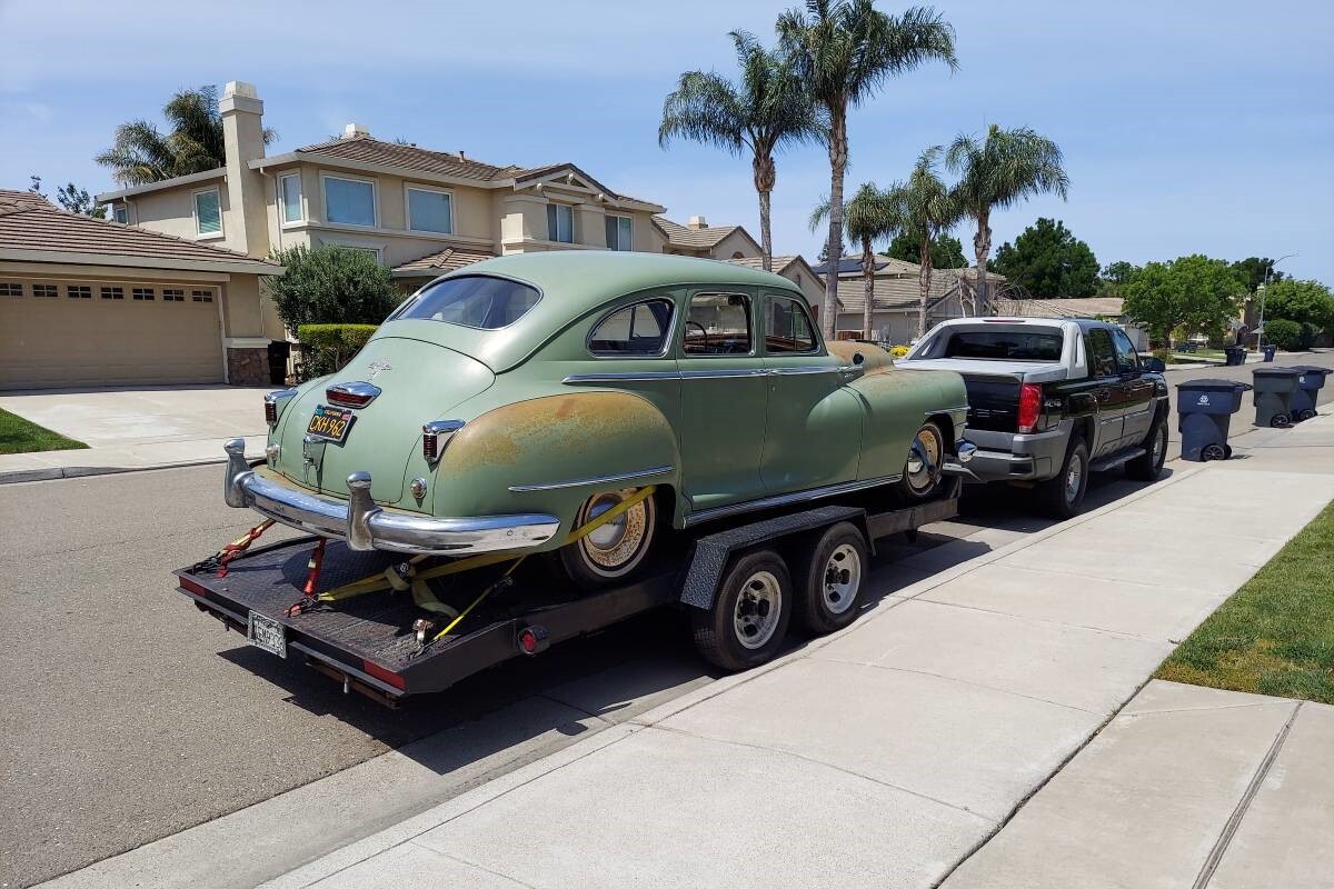 The seller provides limited information about his prize. The photos suggest it was a “barn find” that the seller brought home. But are the non-trailer photos of the car before or after it was rescued? Chrysler built more than 52,000 of the 1948 New Yorker 4-door sedans like this one, so they weren’t exactly rare when new. This one has seen 109,000 miles in its 74 years on Planet Earth. No major problems regarding the body jumping out and the paint could very well be original. The interior is in surprisingly good condition, so this machine was once well-cared for and likely stored indoors during any downtime.