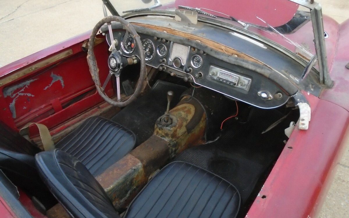As with the rest of the car, it seems like the interior is mostly original, but in desperate need of attention. It’s hard to tell exactly what the story was, but the seller is also advertising another MG and this car may have been the parts car for that one. The mystery is that this car also comes with spare parts, so perhaps this is just an extra project, and the “parts car” donated to two cars. What do you think?
