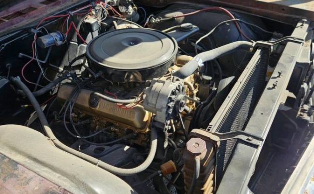 Can’t say for sure it’s a 425, but there is a head bolt on that engine for an A/C bracket and that’s not an air car. So at some point the engine has been swapped. It’s not going easy to bring this one back to pretty.
