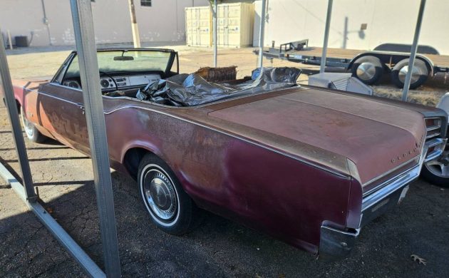 Based on what’s left of the paint and interior, my guess is that this convertible was originally Burgundy Mist with a black interior, a sharp combination that would look great when restored. But will anyone restore a base-level full-size Oldsmobile? There’s no reason you couldn’t drive this car as a fun, beat-up convertible (it has new brakes and exhaust), but it probably deserves better. What do you think lies in store for this handsome 88?