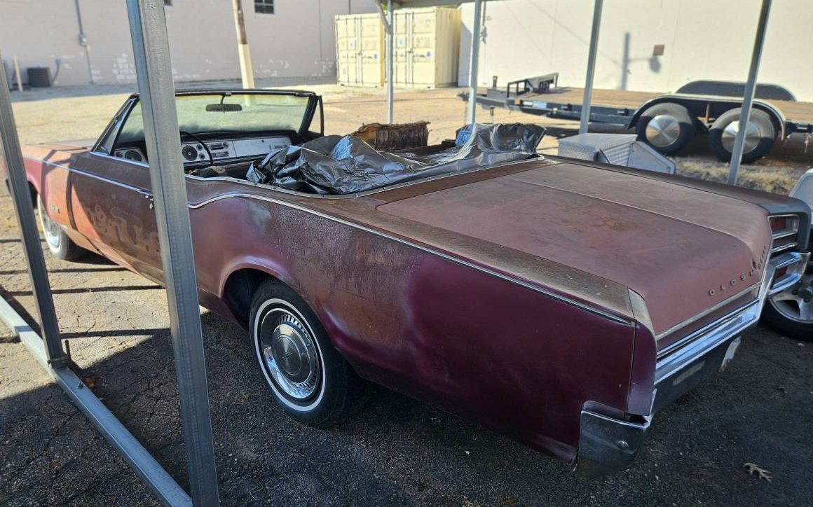 Based on what’s left of the paint and interior, my guess is that this convertible was originally Burgundy Mist with a black interior, a sharp combination that would look great when restored. But will anyone restore a base-level full-size Oldsmobile? There’s no reason you couldn’t drive this car as a fun, beat-up convertible (it has new brakes and exhaust), but it probably deserves better. What do you think lies in store for this handsome 88?