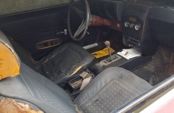 Not sure Mr. Flipper knows much about AMCs. The picture of the interior shows mostly 1969 parts. But the combination of red and black items might be because the same owner who thought an L-88 hood scoop looked cool tried to change the interior colour when he was “kustomizing” the poor thing.